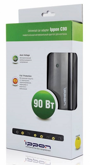 Блок питания универсальный для ноутбуков Ippon С90 автоматический 90W 15V-19.5V 10-connectors от прикуривателя LED индикатор