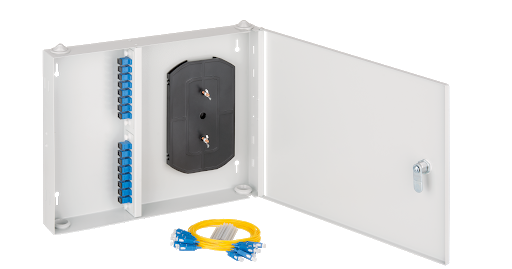 Бокс оптический настенный Nikomax NMF-WP16SCUS2-IB-GY 16 SC/UPC,SM 9/125 OS2,в комлекте:адаптеры,монтажные шнуры 1м,сплайс-кассета с крышкой и КДЗС