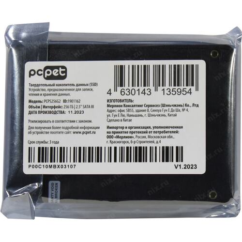 Накопитель SSD PC Pet 256Gb PCPS256G2 2.5" (R540MB/s / W460MB/s, 80 TBW)