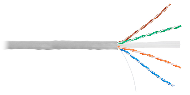 Кабель UTP кат. 6, 4 пары solid, PVC, 23 AWG (в бухте 305м) NIKOLAN NKL 4140A-GY