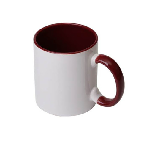 Кружка 300мл белая с бордовой внутренней поверхностью и с цветной ручкой (Mugreen премиум)