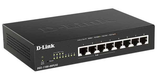 Коммутатор D-Link DGS-1100-08PLV2/A1A (L2) 10/100/1000 8x1Гбит/с 4PoE+ 80W настраиваемый